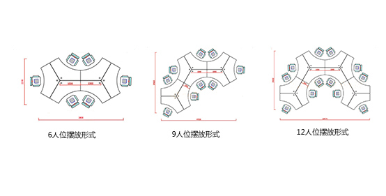 2、從員工性質來說,120°Y型工位適合那些人群呢?此類型的工位3個位一個組合,6個位和9個位的組合,呈現出一個半圓形狀,能使員工之間的交流更加緊密,所以特別適合于需要開放式交流的團隊,尤其是隨著互聯網發展而起來的企業,一般對于開放性的要求比較高。并且此種工位通常都會帶有屏風,屏風的采用又能使員工之間保持一定的私密性。