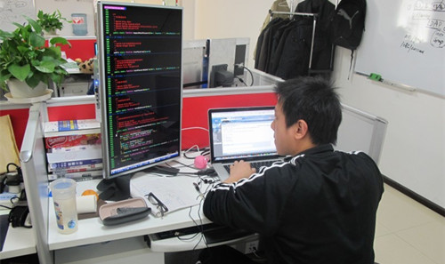 此圖是美團網(wǎng)技術(shù)部某員工的工位,美團目前技術(shù)部員工高達(dá)幾十人,每個人的電腦都很有范兒。