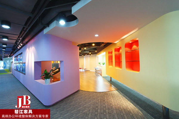 上海碧江辦公家具在針對騰訊公司所屬互聯(lián)網行業(yè)的性質以及其自身的個性化辦公家具需求,在整個辦公空間都配備了公共的辦公空間和封閉的辦公空間。采用的曲線的造型,每一處你看不到直線的造型。曲線的優(yōu)美和靈活真是騰訊公司發(fā)展起來的的信念。在每一個公共的辦公空間有意見會議室,開會討論都在封閉的會議室里面,不會干擾到其它人的工作。絢麗的色彩明亮的燈光充滿活力。
