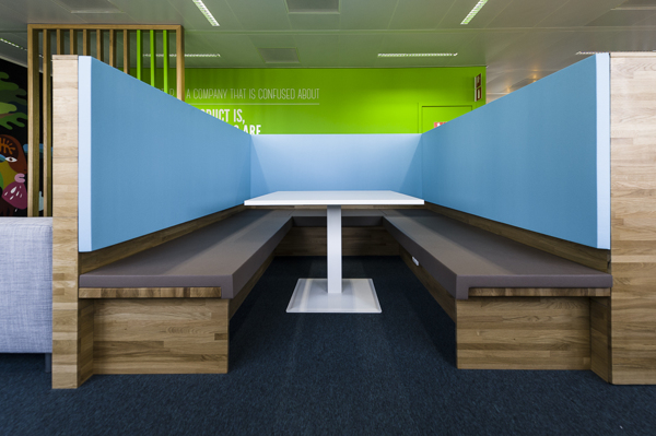 這種多功能型洽談區,可以因為角色的變動,來一個華麗蛻變,蛻變成職員休閑區,難道您不這么覺得嗎?天然藍的色彩背景圍繞在我們周圍,簡簡單單的兩個長凳,這樣的一個空間告訴我們原來簡單可以如此時尚。