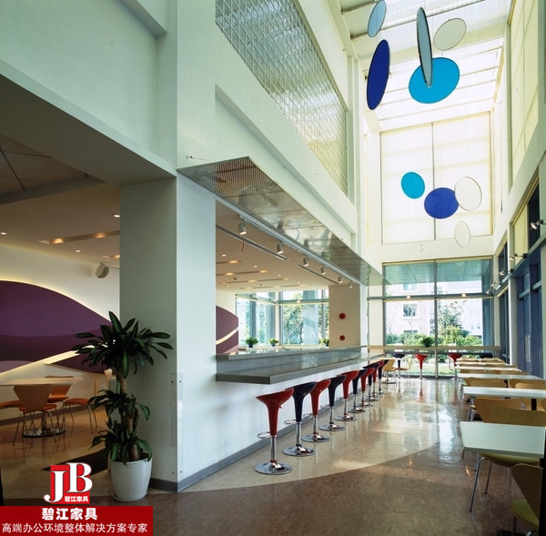 上海惠普總部前臺接待區(qū)的辦公家具,尤其是烤漆前臺接待桌跟它們的LOGO上下呼應(yīng),更加顯得蓬蓽生輝。前臺接待區(qū)再配上一些休閑沙發(fā)椅,提升惠普門頭形象的同時不失人性化設(shè)計。