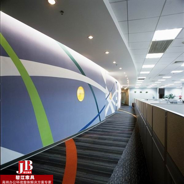 職員辦公區(qū)與走廊“遙相呼應(yīng)”,碧江辦公家具在為其配置職員辦公桌椅的時候就考慮到要與走廊的設(shè)計及色彩要融于一體,且要做到“悄悄”的劃分開來。現(xiàn)在看起來,貌似這個效果已經(jīng)大到了。