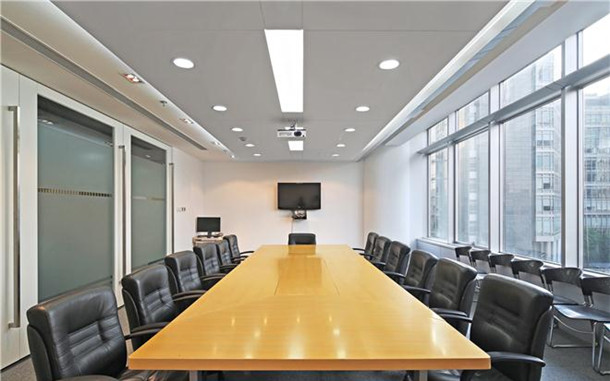前廳通過借景的手法將大會議室及開放式茶水休閑洽談區(qū)融合起來,共同形成南北通透開敞豁亮的接待展示前區(qū),使來訪者充分感受到先抑后揚的空間氛圍;