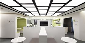 中心休閑辦公區(qū)采用光與型的結(jié)合營(yíng)造出沖擊波般的視覺(jué)張力,象征著創(chuàng)業(yè)思想的無(wú)線延伸發(fā)展。
