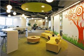 這里還有專為獨立思考的工作者特意設計的辦公空間呢。五光十色的顏色,是不是立刻讓你活躍的思維提起了興趣呢,明亮的色彩是可以提高工作的效率與工作激情的。