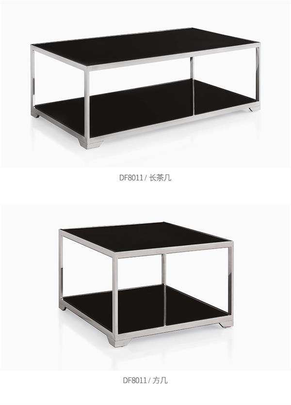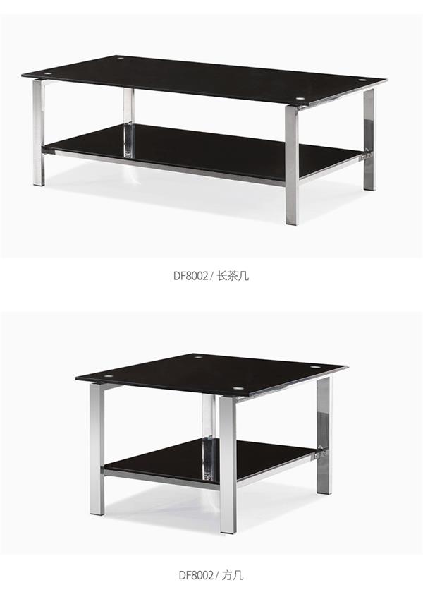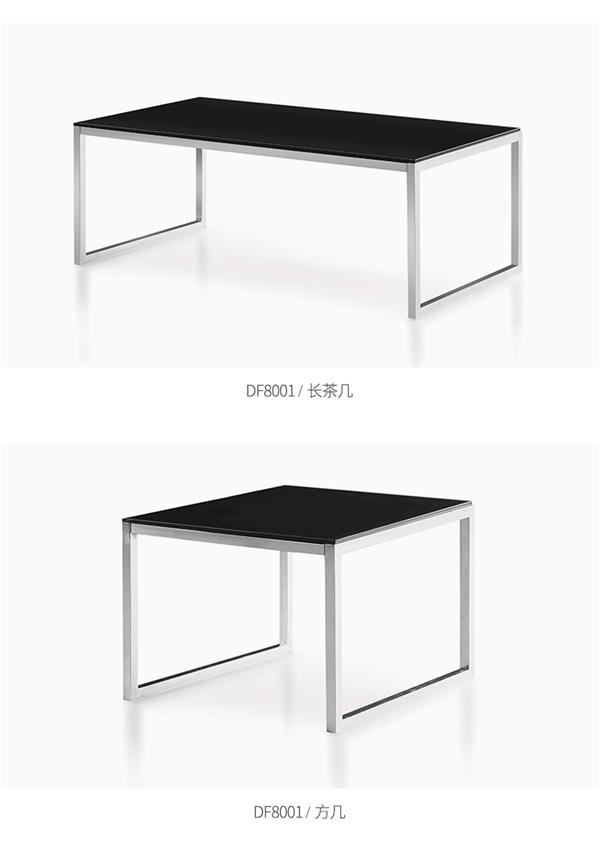 黑色鋼化玻璃茶幾不銹鋼長茶幾辦公區接待會客辦公家具